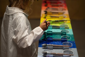 Kinder in Gruppen zu ca. sechst erproben die Welt der Klänge mit unterschiedlichen Instrumenten, mit sich und miteinander.